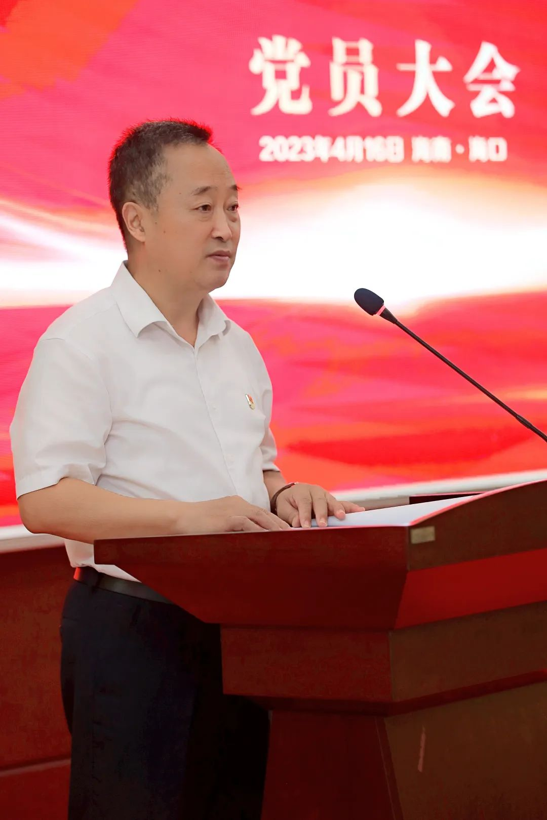 海口市高新区两新组织党委副书记傅爱萍宣读了《中共海口国家高新区非公有制经济组织和社会组织委员会关于同意成立中国共产党海南尊龙药业集团股份有限公司委员会的批复》。